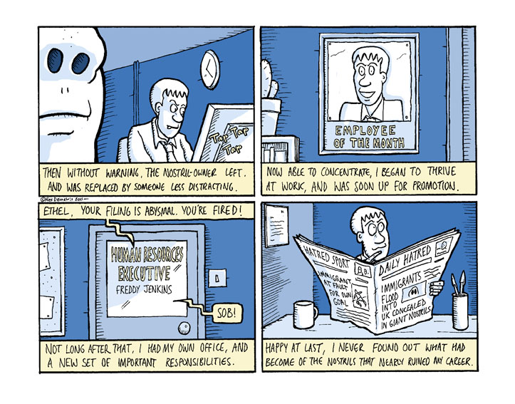 A very silly comic strip I have been working on lately...kind of a work in progress, as I'm planning to colour this, but thought I'd slap it on here (it's good for morale).